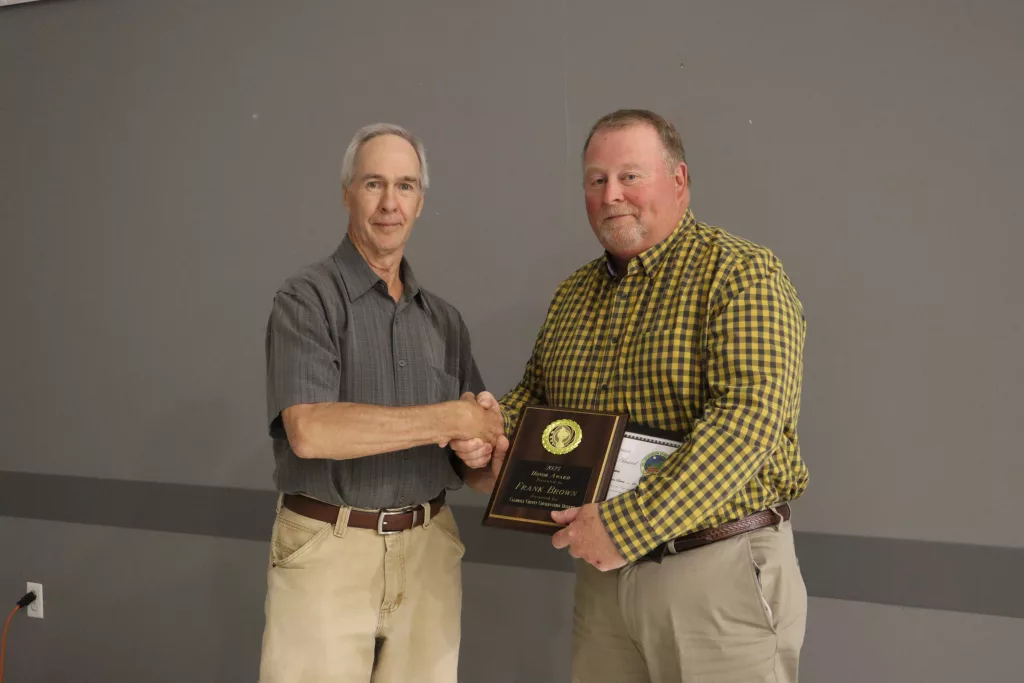 The conservation district’s annual dinner was held at Northside Baptist Church. The program was conducted by the Caldwell County FFA Officer team, with Abigail Drennan presenting an honor award to retired agriculture teacher and administrator Frank Brown for his support of the district throughout his career.