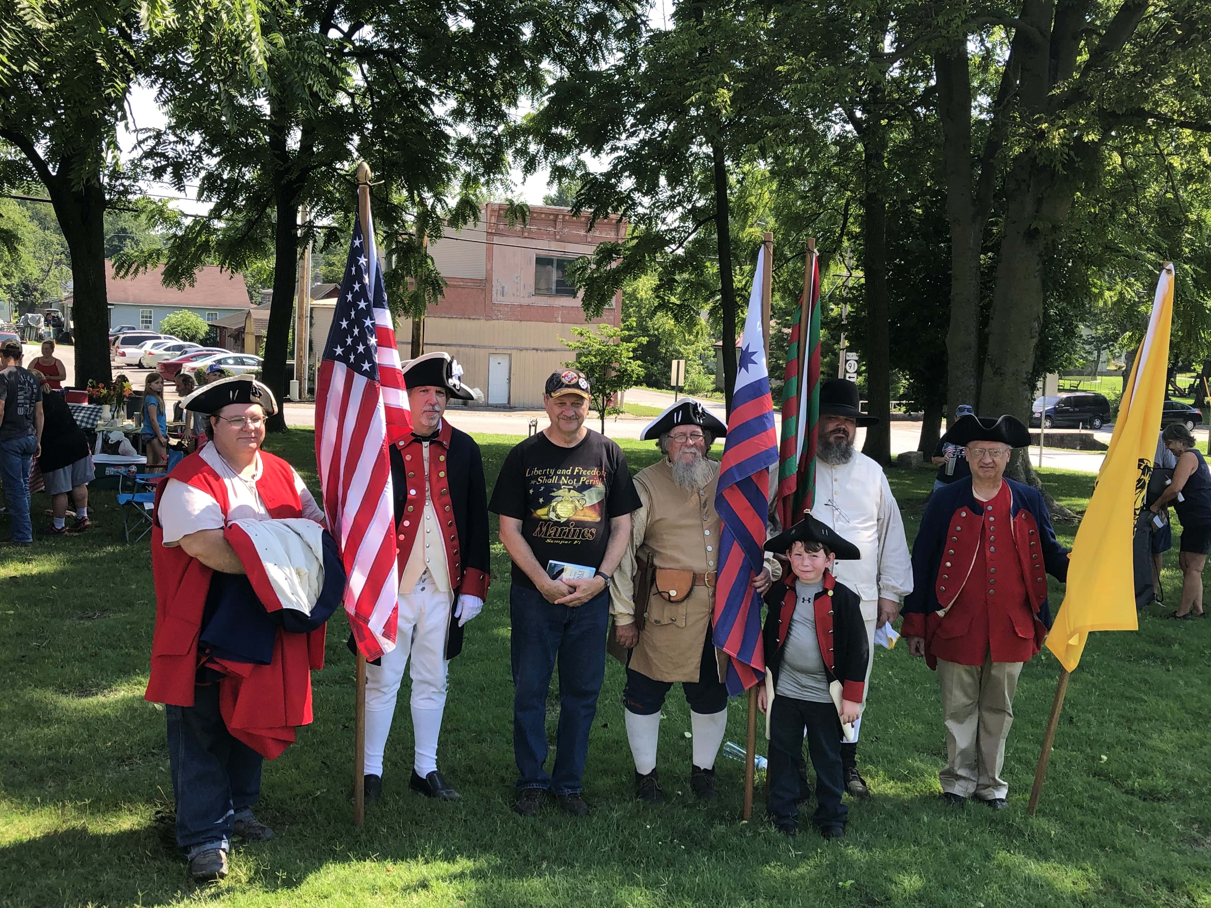The Declaration of Independence was then read in its entirety by members of the Sons and Daughters of the American Revolution Robert Ward, Maggie Gammon, Sarita Holt, Mark Gertin, and Ed Georgen.