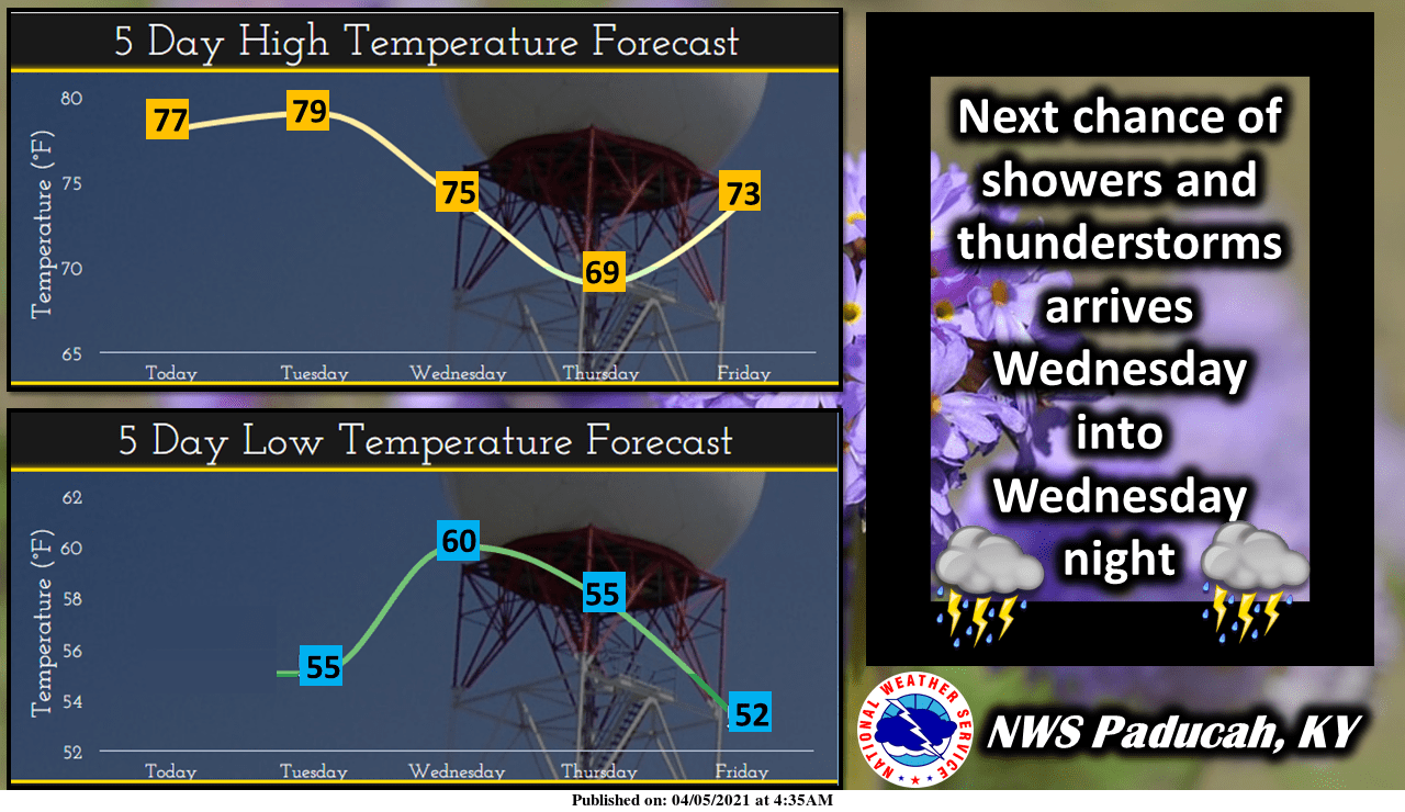 Weather Edge forecaster David Powell said highs through Wednesday will be at or just above 75 degrees.