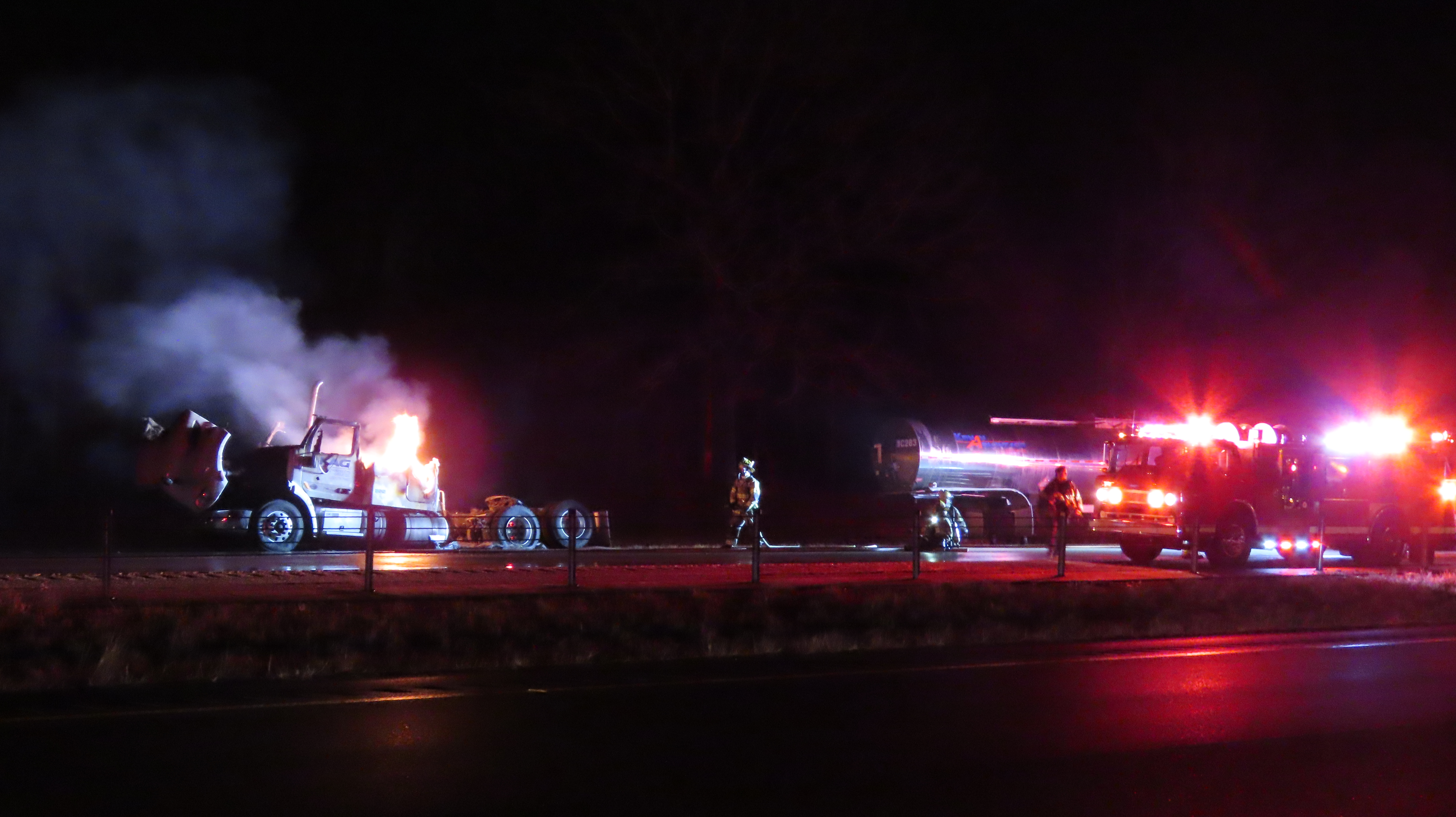 Christian County emergency personnel say the truck was able to detach its trailer which was carrying resin and the fire was contained only to the truck.