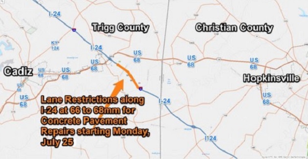 Traffic will be restricted along a section of Interstate 24 in Trigg County starting Monday to allow concrete pavement repairs.