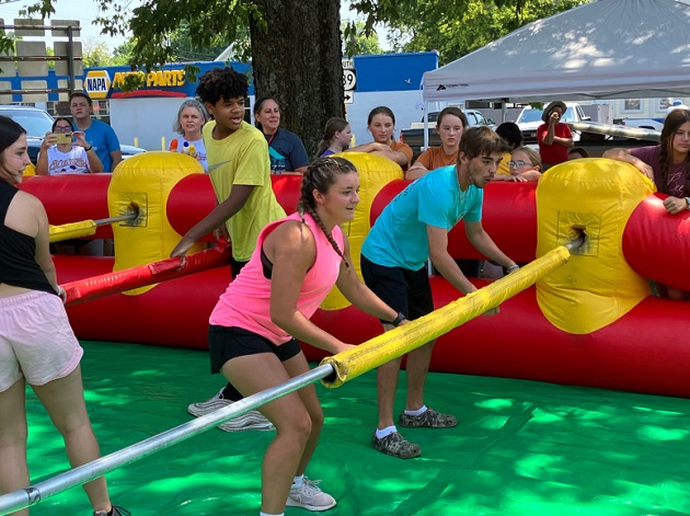 The human foosball tournament provided a unique way to get involved. It is based on the board game but is actually played as players climb into an inflatable. Each of the 6 teams signed up for the tournament consisted of 5 players who played for 10 minutes before rotating with another team. After a break, they returned to continue the tournament to determine a winner.