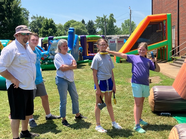 Julie Wadlington and her family are from Cadiz and were trying out the Ax throwing inflatable. She said her family was excited about the day and what God was going to do.