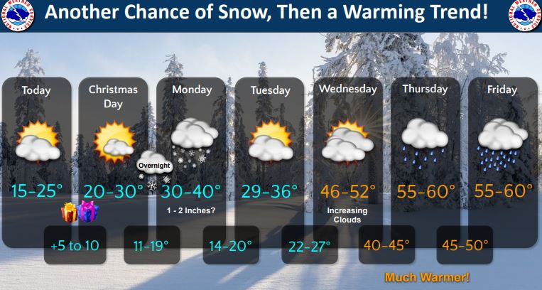 Beginning late Christmas night and into early Monday morning, the National Weather Service is expecting much of west Kentucky, southern Illinois, southern Indiana and southeast Missouri to receive at least a 1-inch blanket of snow — and perhaps two inches in certain portions.