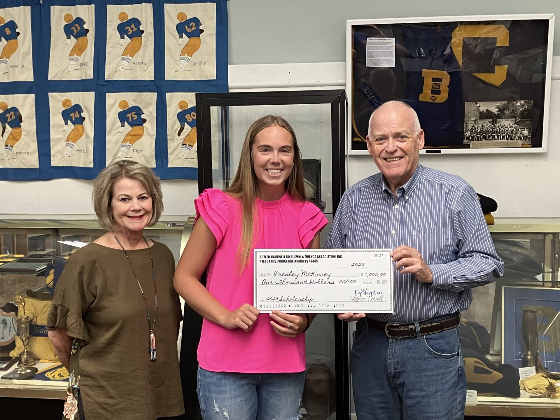 The Caldwell County Schools Alumni Association awarded a $1,000 scholarship to recent graduate Presley McKinney Wednesday.