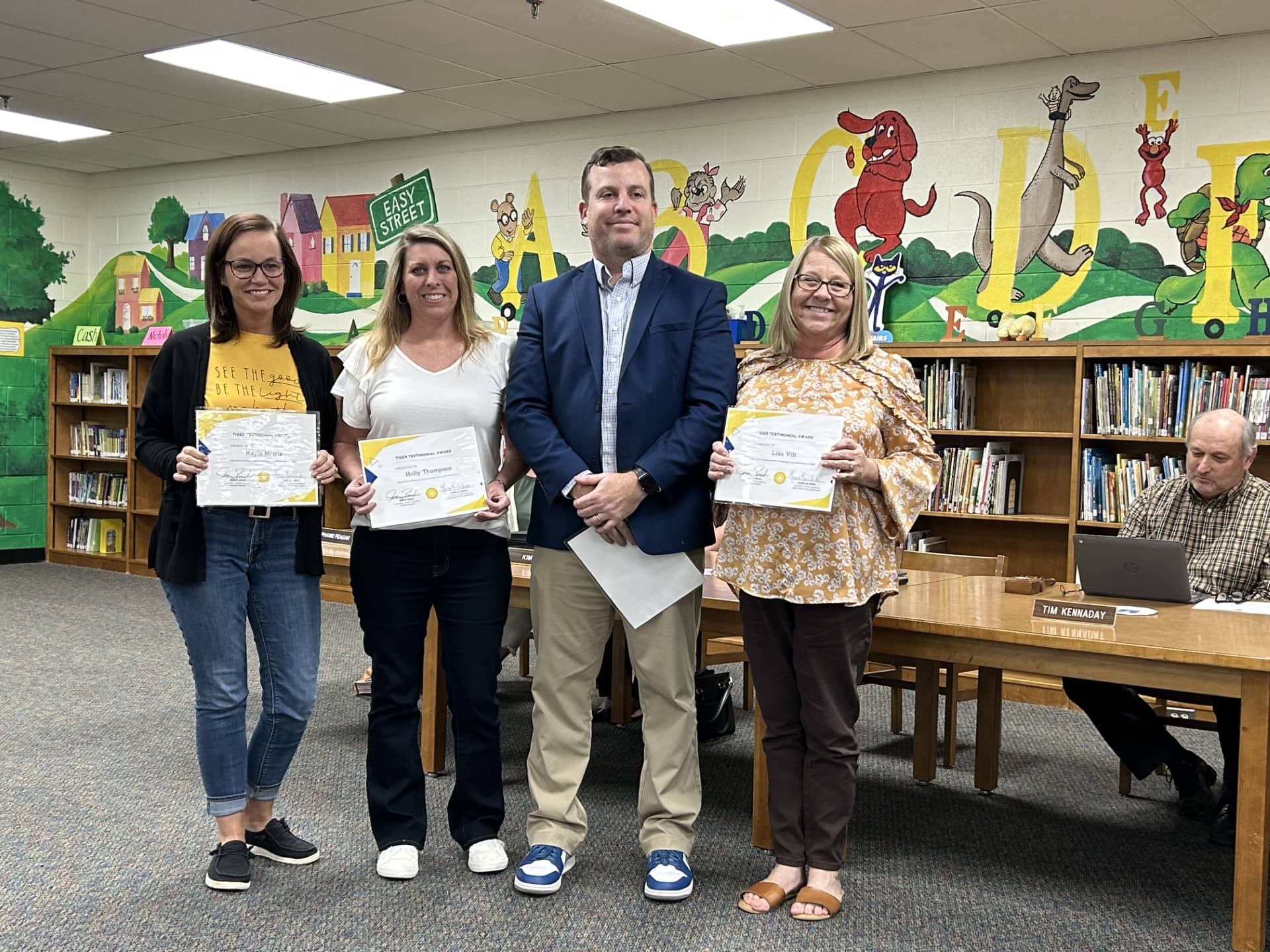 Dr. Roach also announced the Tiger Award recipients for September were the Attendance Clerks at each of the schools. He noted they had been nominated by Director of Pupil Personnel Laura Lee White. White expressed her appreciation for Holly Thompson, Meagan Stalion, Lisa Vilt, and Kayla Morris.