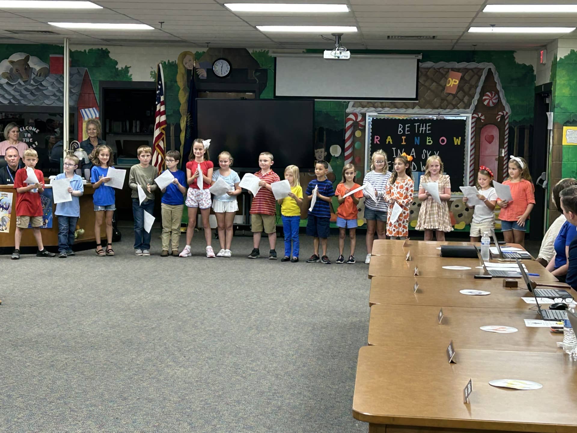 The meeting opened up featuring a group of second-grade students who gave a presentation from the Readers Theater they had during Constitution Week.