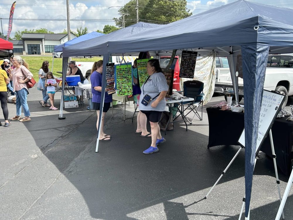 Local vendors set up on the parking lot at the Kentucky Farm Bureau office located on Highway 62 West in Princeton. The market will be open from 8:00 am until 12:00 noon each Saturday. Lisa Trimble with the Farmers Market said opening day was a success for the group.