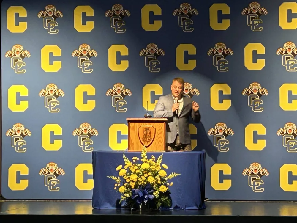 click to download audioThe guest speaker for the service was Caldwell County graduate Brandon Sigler.