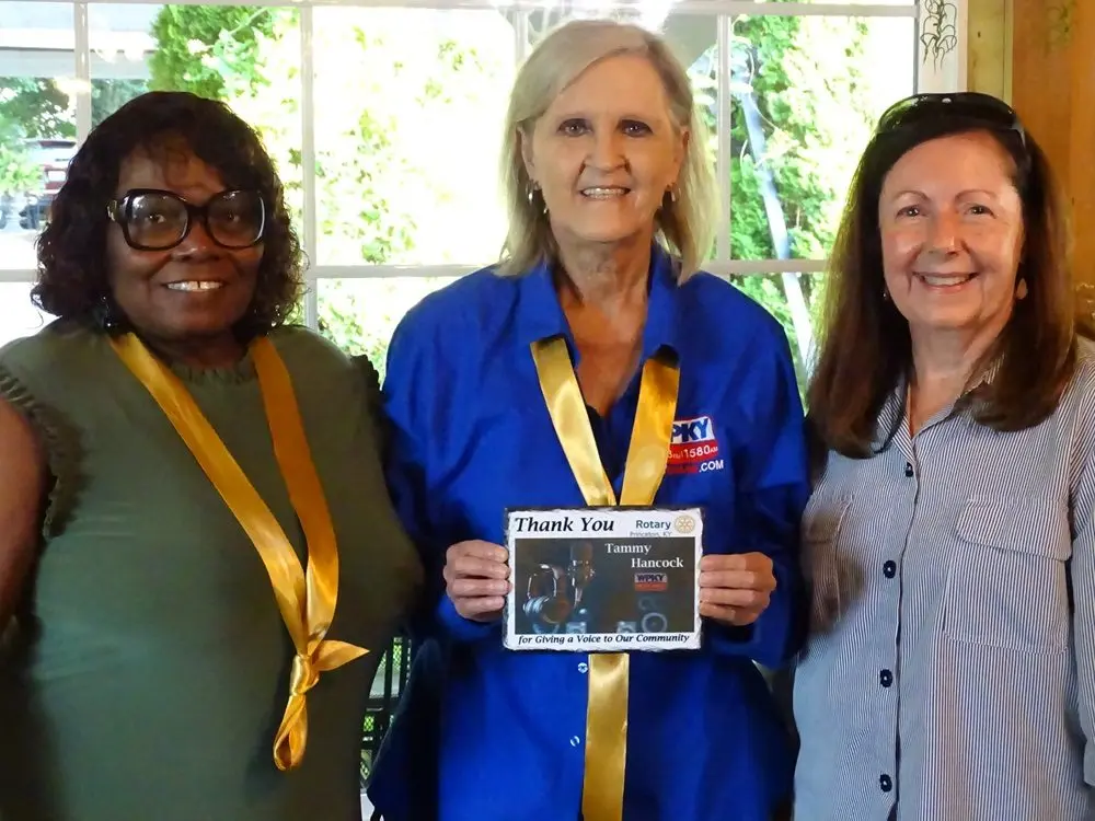 Brunelle also surprised Tammy Hancock of WPKY’s News Edge with a plaque, recognizing her coverage of the Rotary Club.