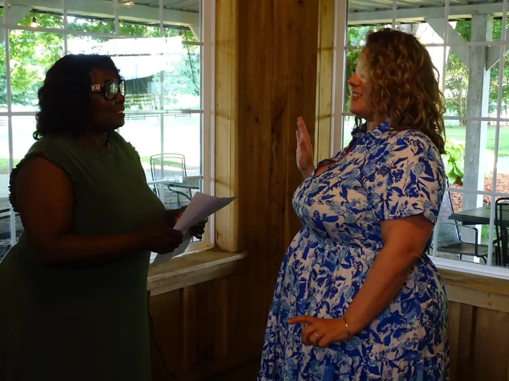 She then invited Steffani Burton to join her, officially installing Burton as the new president of the Club. After assuming office, Burton installed Shane Fortner as president-elect, Gale Cherry as vice-president, and Laci Harper as secretary, while confirming that Stacy Boone will continue serving as treasurer.
