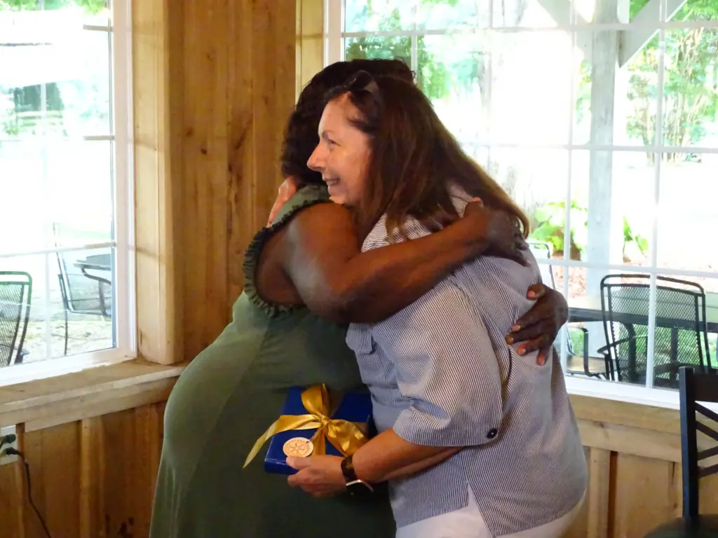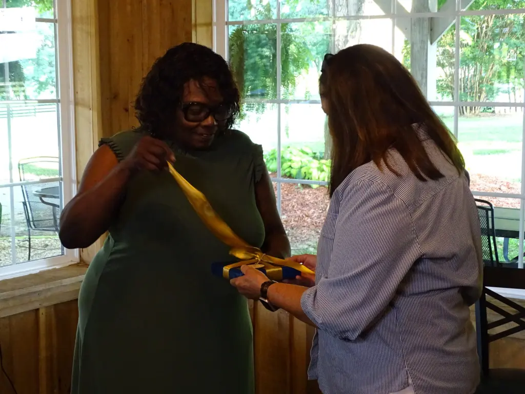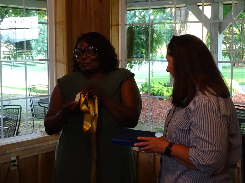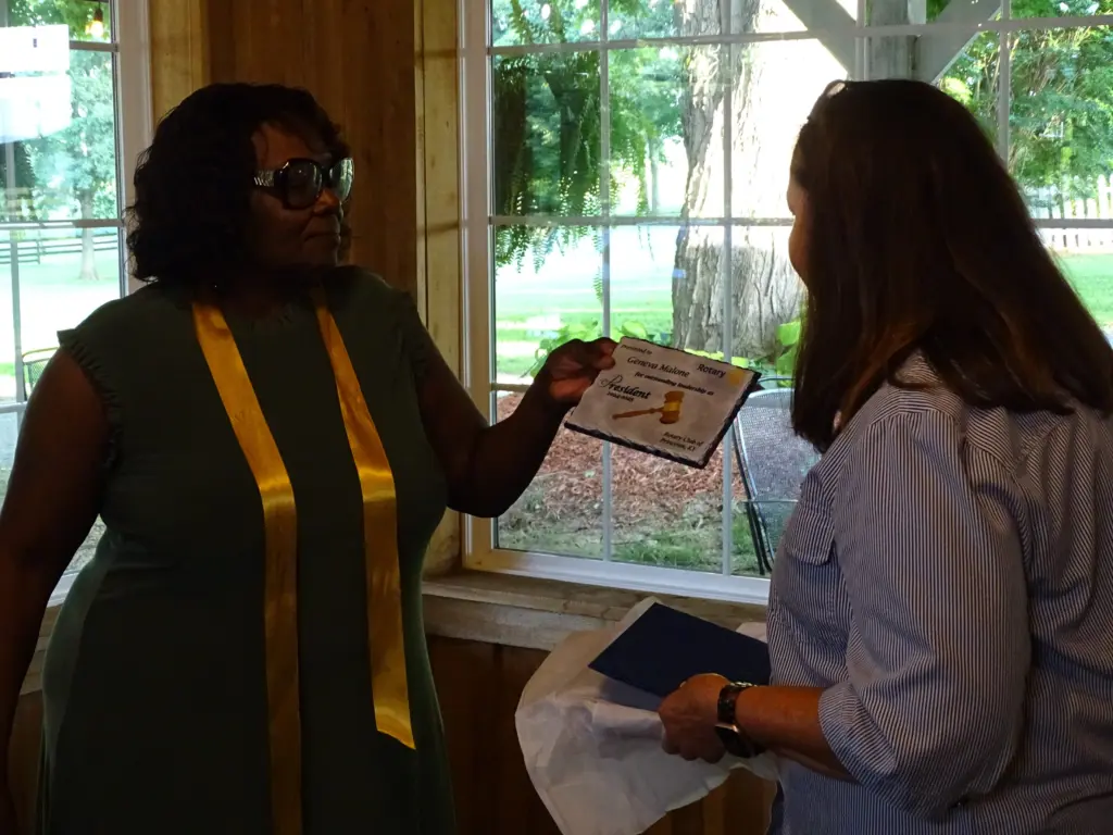Following the installation of officers, outgoing Secretary Pam Brunelle presented Malone with a plaque in recognition of her service as president during the 2024–2025 term.