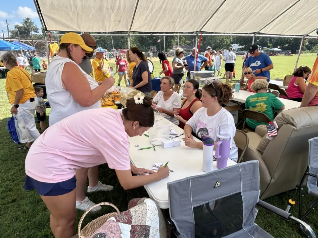 click to download audioThere was another person at the Festival who everyone will recognize her voice because of hearing it on air for several years during election time. Former Caldwell County Clerk Toni Watson was there with her family.