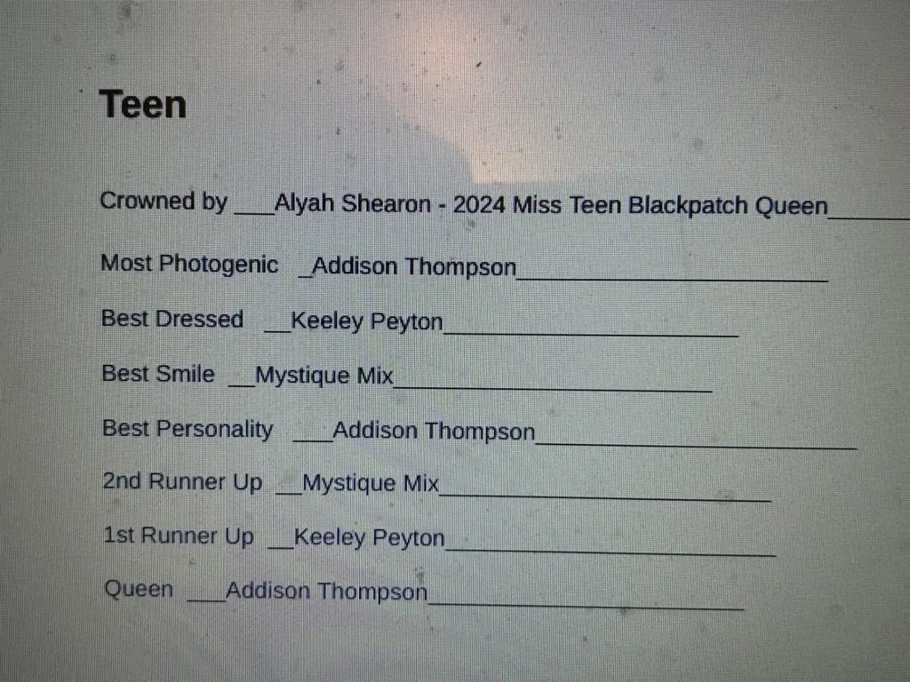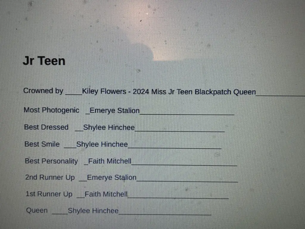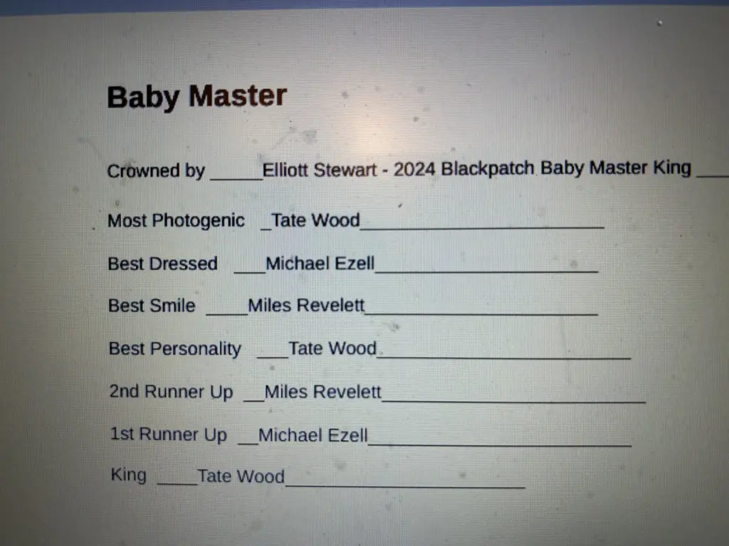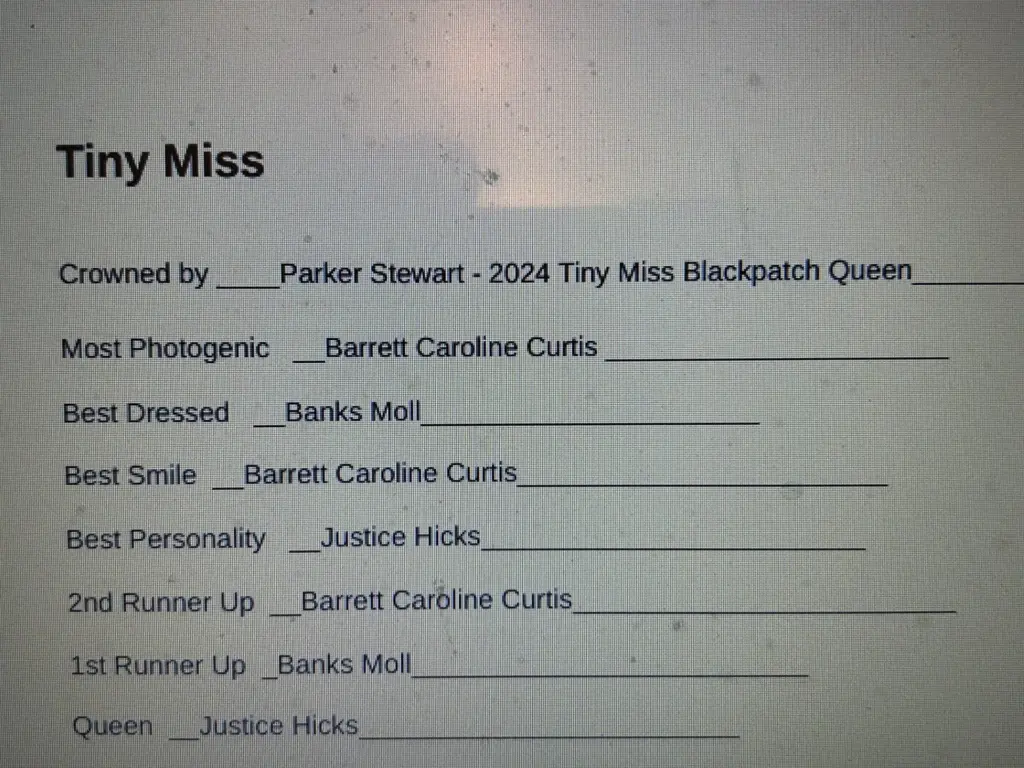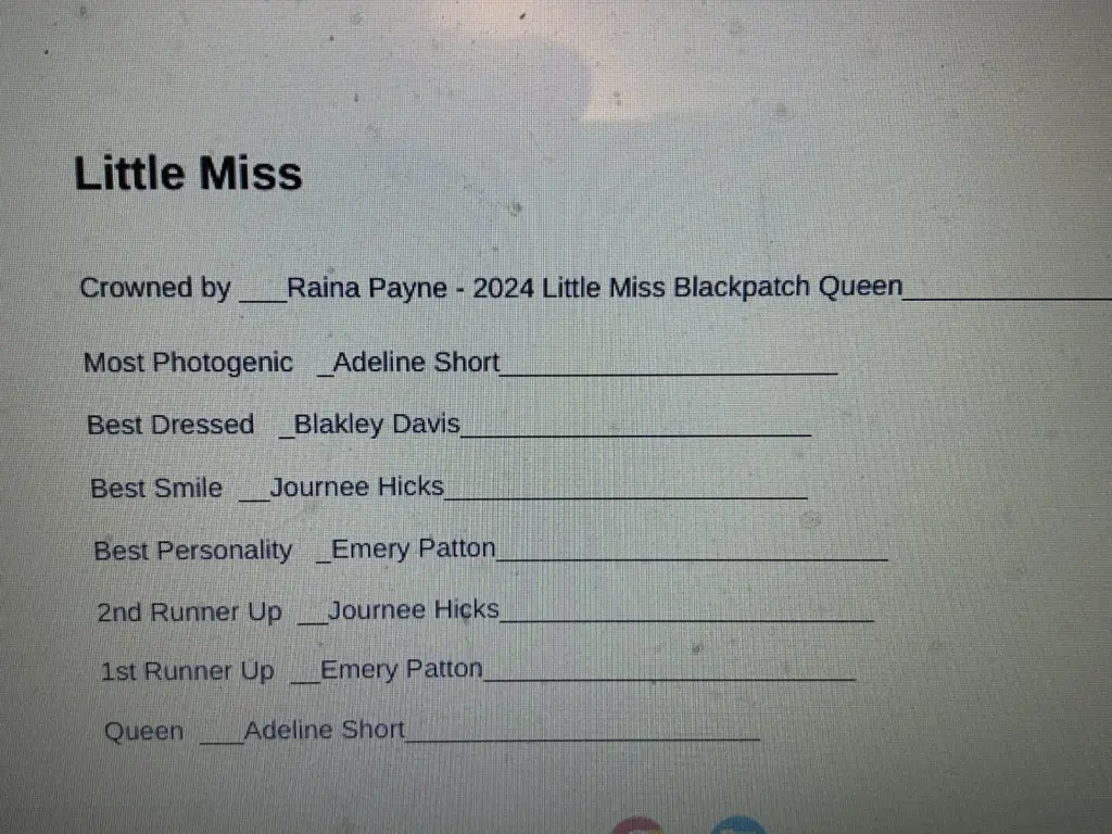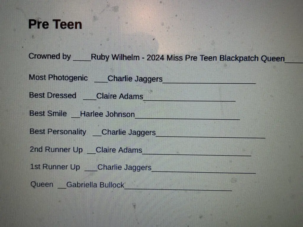 The Black Patch Pageants were held last Saturday and for the second year the Pageants were sponsored by the Caldwell County Middle School Junior Beta Club. This year they were held inside the middle school gym with over 40 candidates competing in 8 divisions.