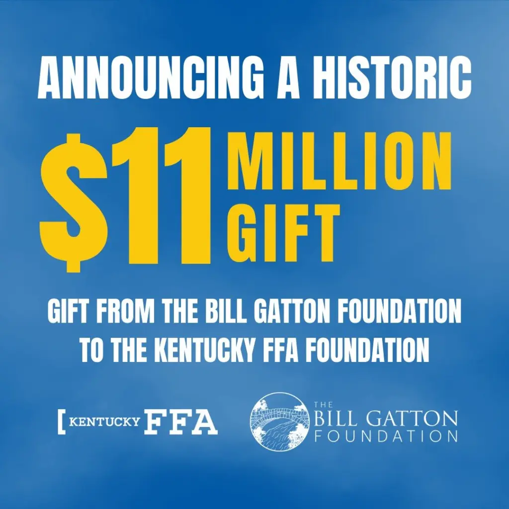 The presentation was made during the Kentucky State Fair on behalf of the Bill Gatton Foundation. Mr Gatton was a successful businessman with a history in FFA and was elected as the Kentucky State President in 1950. He grew up in the small town of Sacramento, located in McLean County.