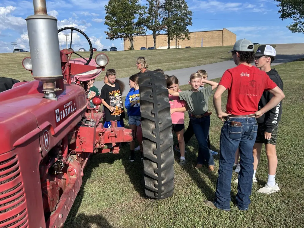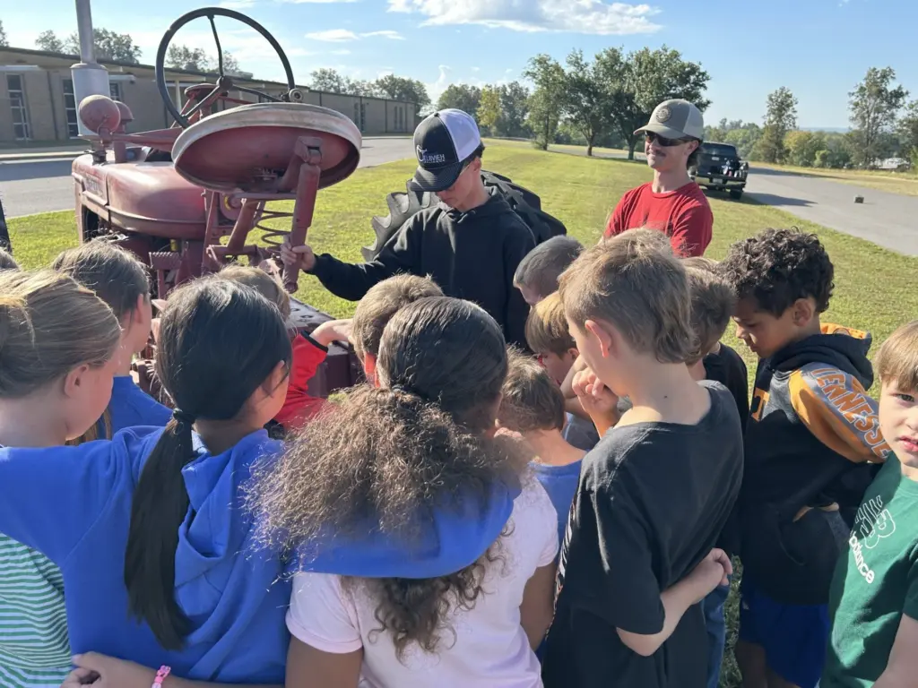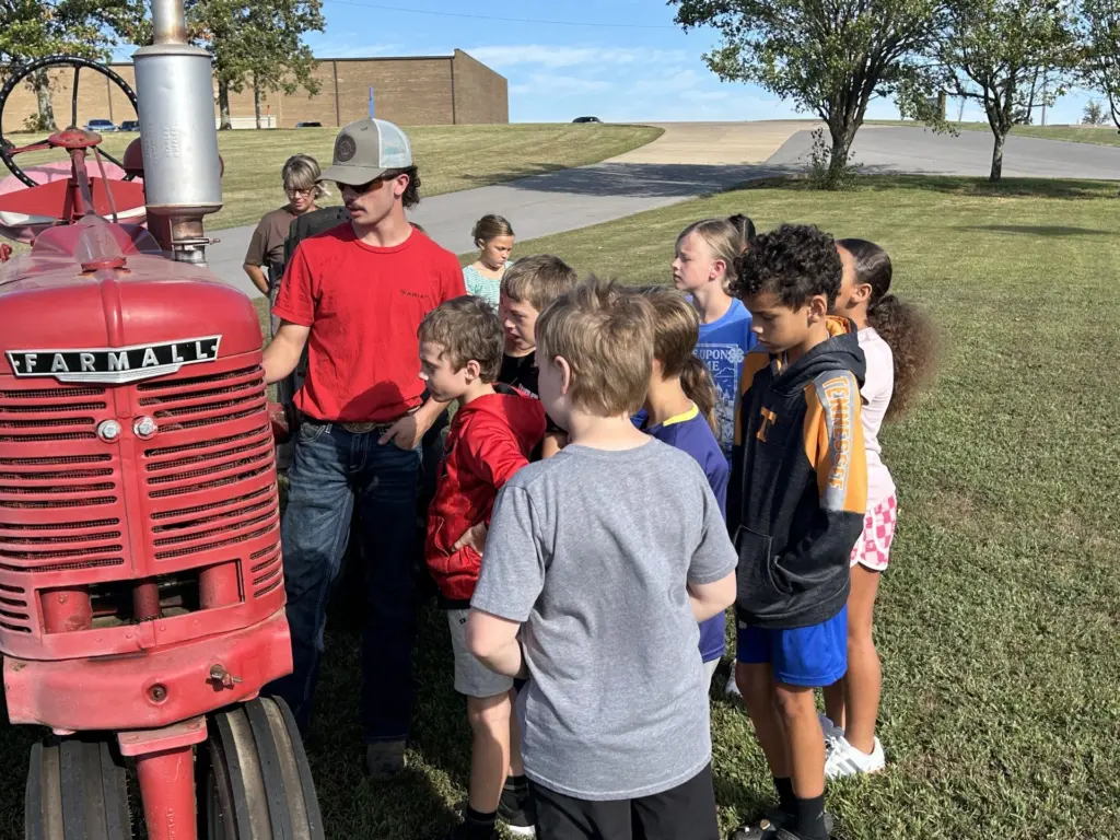 This is thanks to the annual Farm to Plate program sponsored by the local high school FFA Chapter. The entire third-grade class is divided into half with each half spending the day learning about agriculture. One day, the students will have guest speakers and activities in the classroom, while the other half will board buses and travel to the Food Giant to see the food products in their final stage as they are sold to customers. They will then travel to the Roberts Farm located in Caldwell County to see actual farming equipment and be shown how the farmers operate and process the farm products. The classroom instruction includes learning about soybeans and soy products and how they are used, learning about the fields and soil and how they are used to grow food products, seeing a tractor and hearing about how it operates, and then racing pedal tractors. Local FFA members are at each station to share and explain how each product is used to provide for the students and their families. FFA member J D Slaughter shared about the purpose of explaining the tractor.