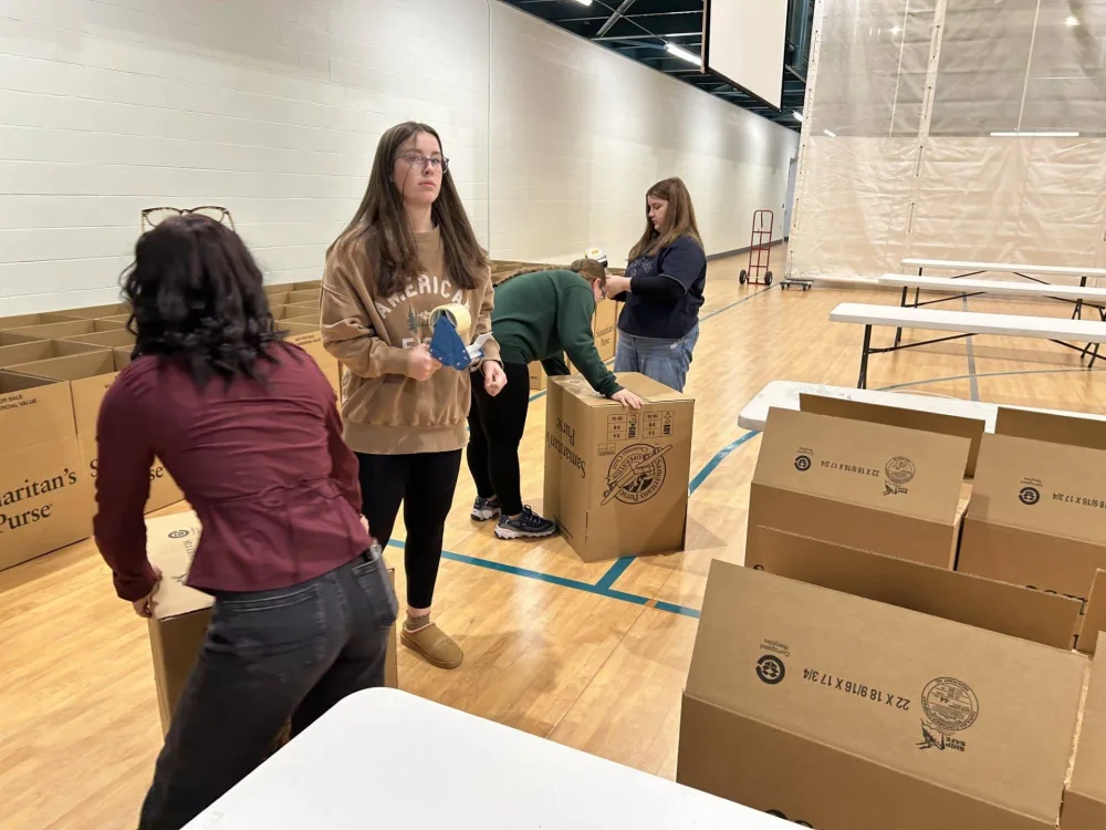 Some members of the Caldwell County High School FBLA Chapter showed up Monday morning at the Princeton First Baptist Church Christian Life Center to volunteer to help with the setup for the Operation Christmas Child Shoebox Drop Off.