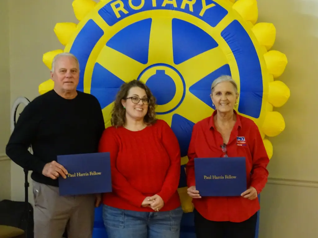 Additionally, Burton presented two Paul Harris Fellow certificates and pins at the party, explaining that this is Rotary International’s highest recognition.