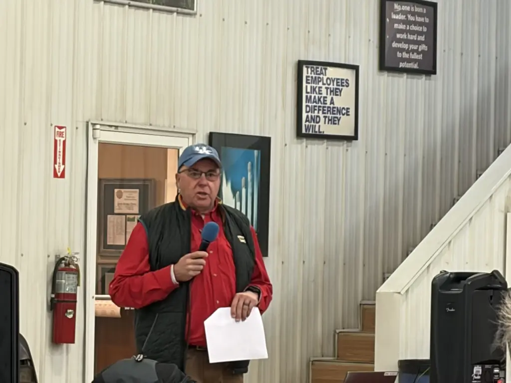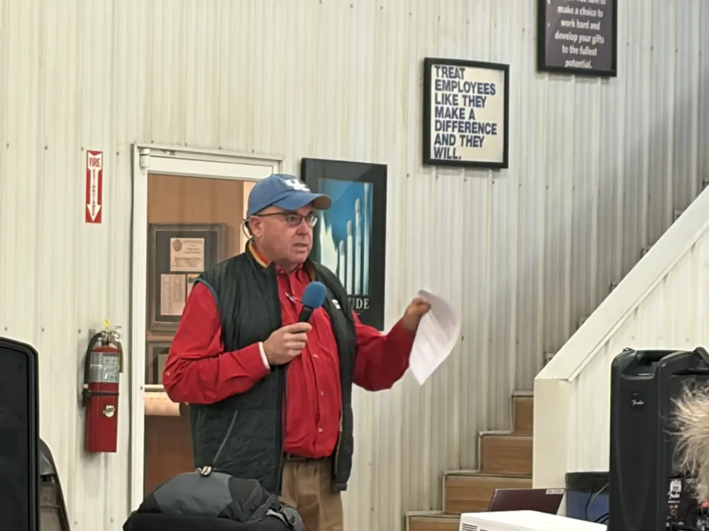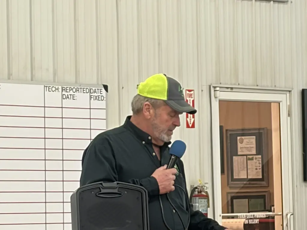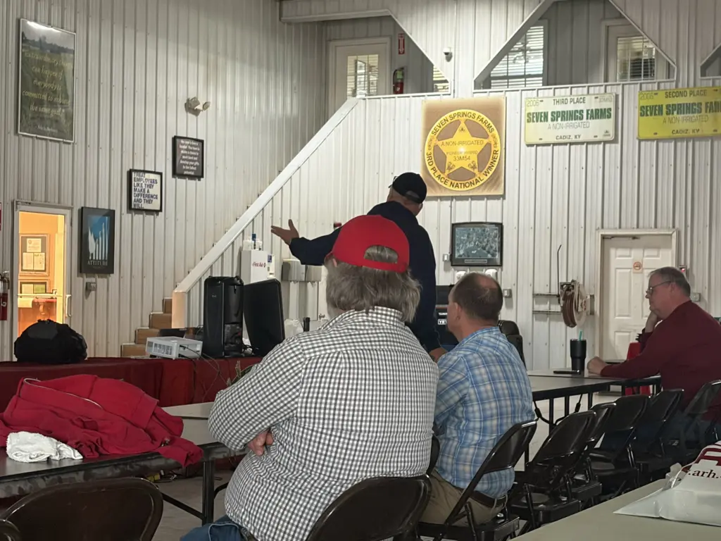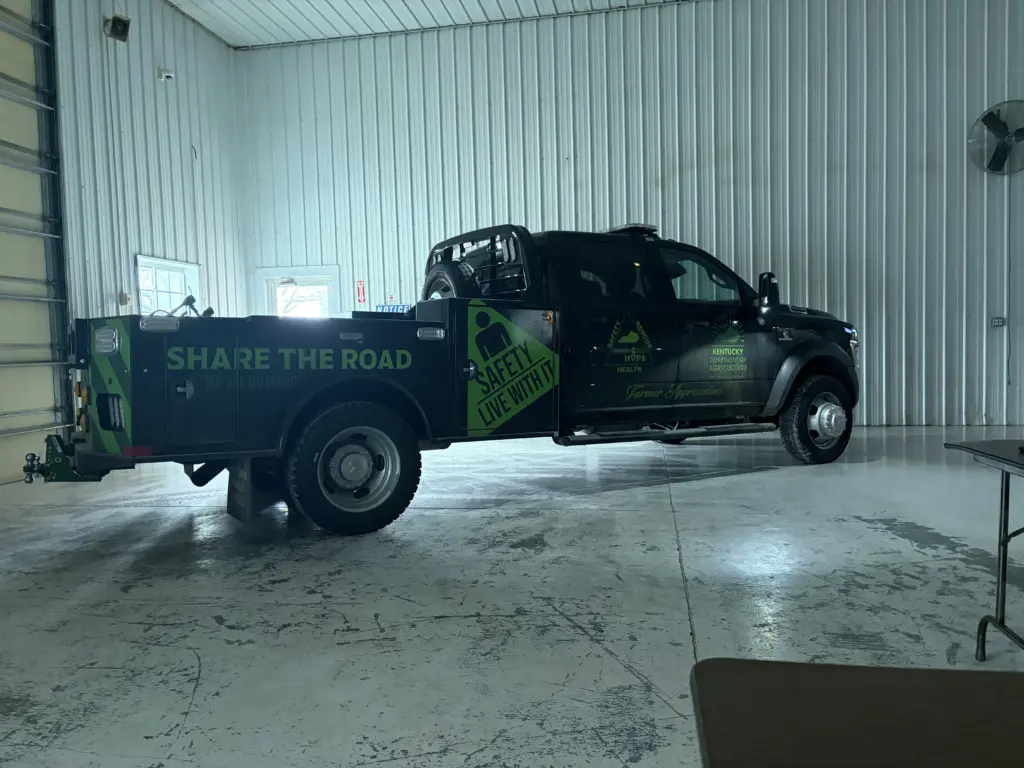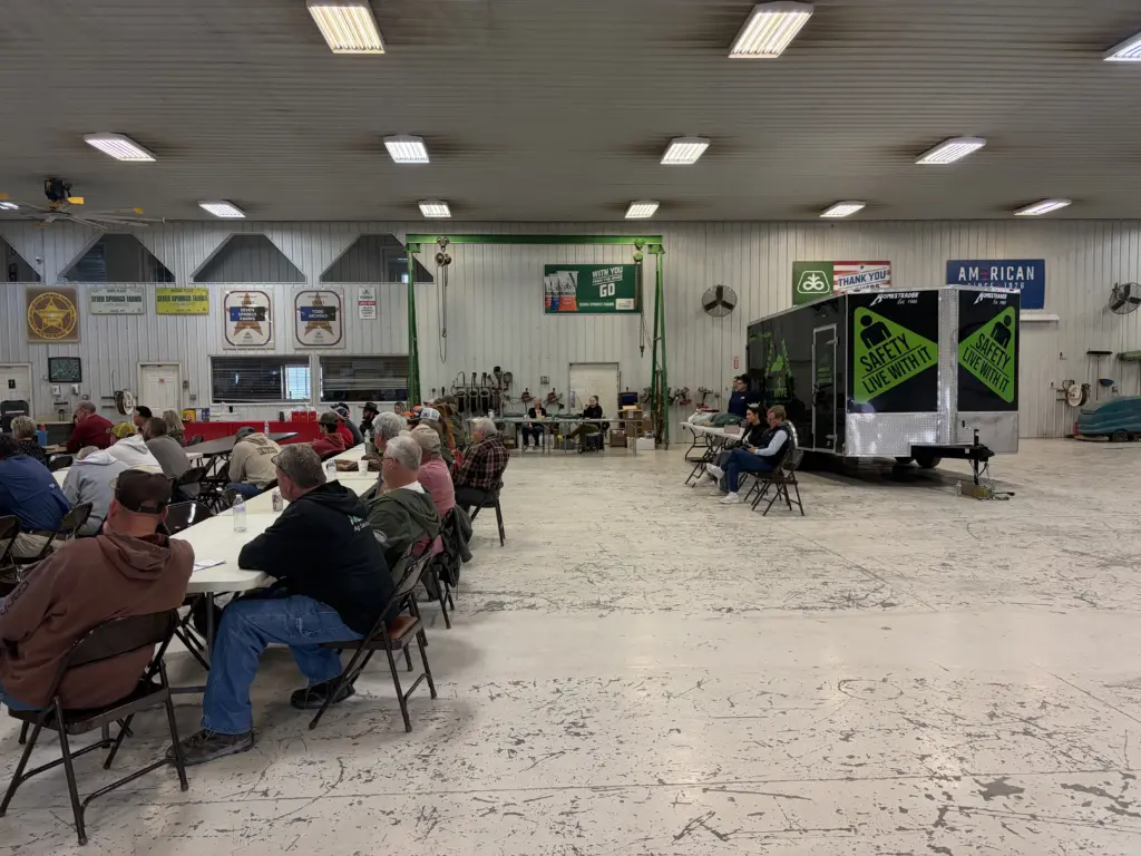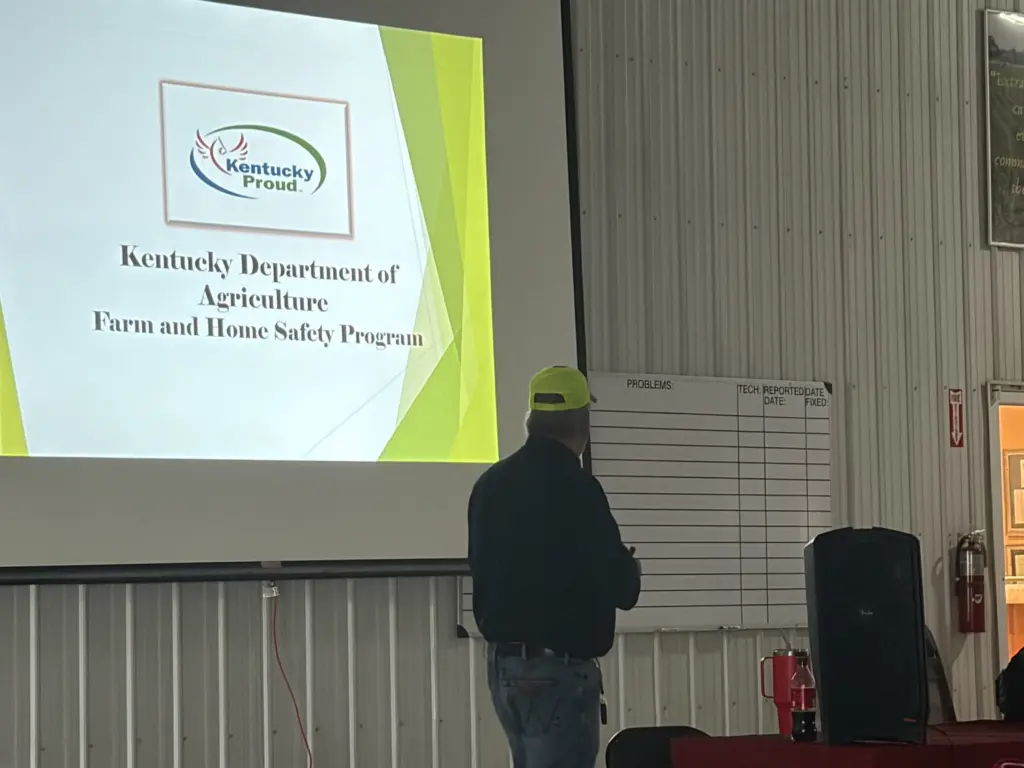 The annual safety day is held the first Wednesday after the National Farm Machinery Show to train the team at Seven Springs and other nearby farms on various aspects on farm safety. Kentucky Department of Agriculture Safety Director Dale Dobson says the Seven Springs safety day was one of the first to be conducted on the farm.