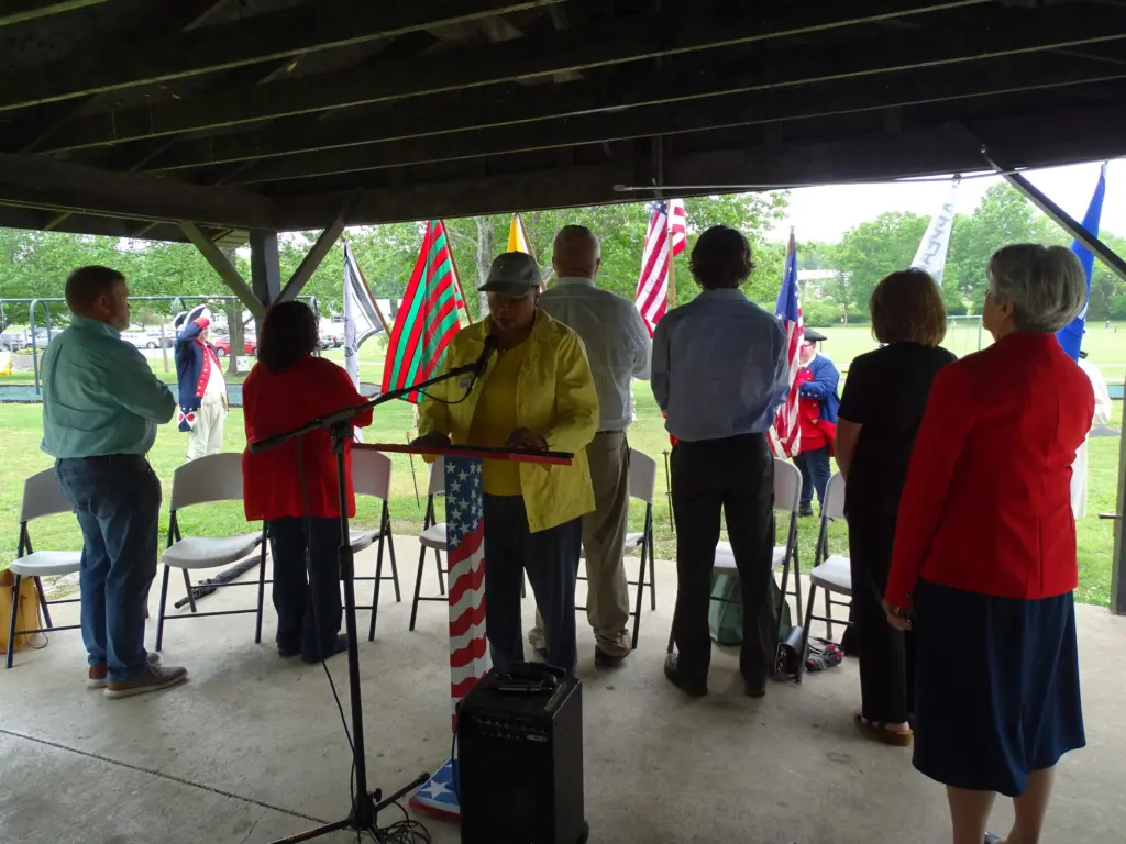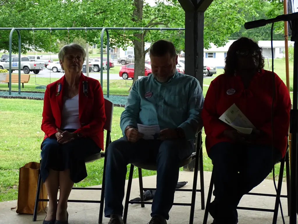 click to download audioBrother Presley Lamm of Fredonia First Baptist Church delivered the invocation, Dotson Park Board President Geneva Malone led the pledge, and Barbara Poulnot of Shephard Street Baptist Church led the singing of the National Anthem.