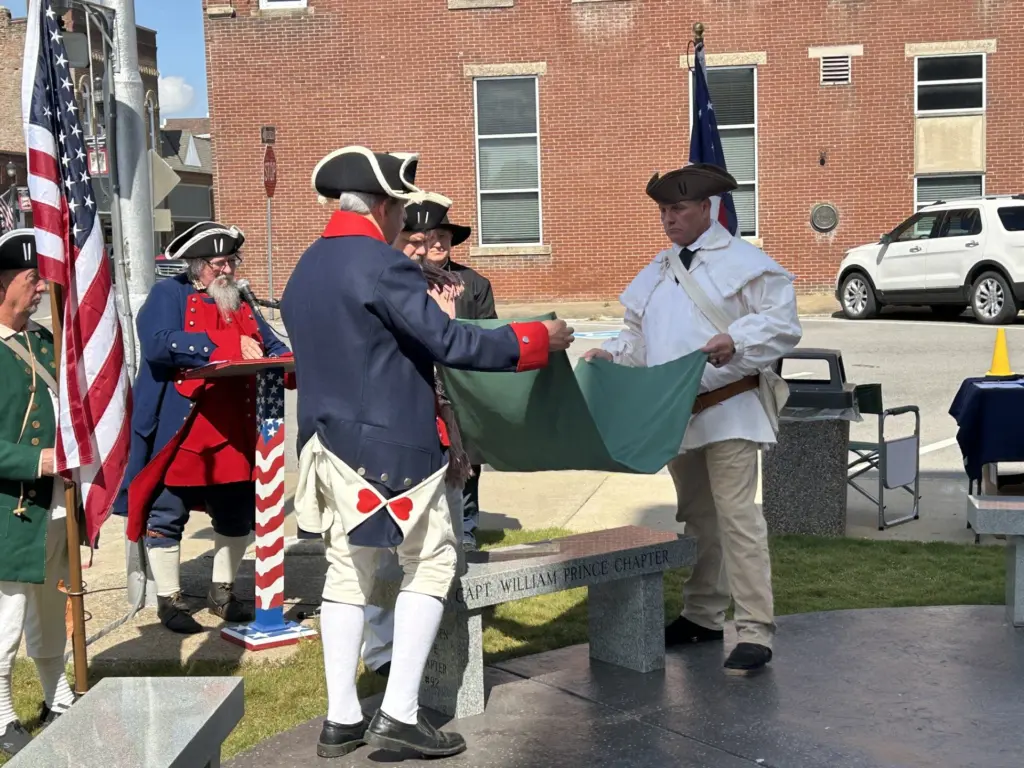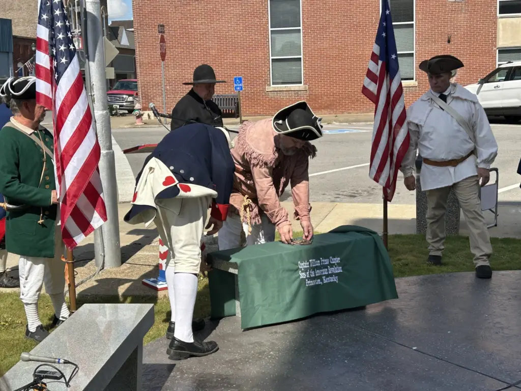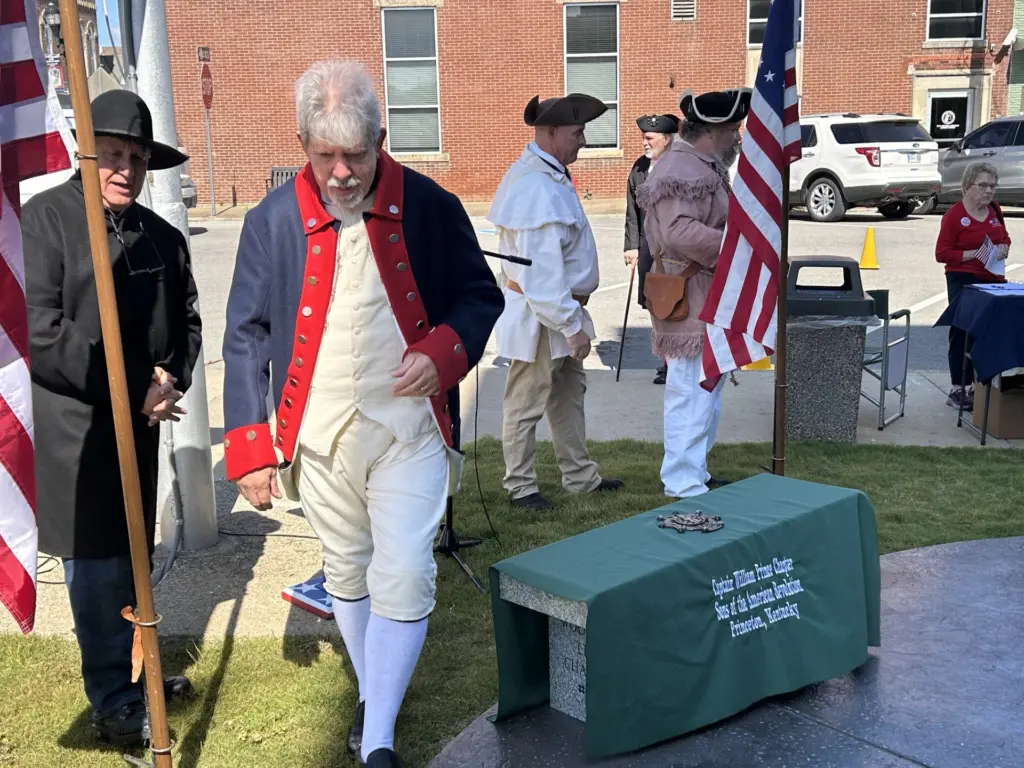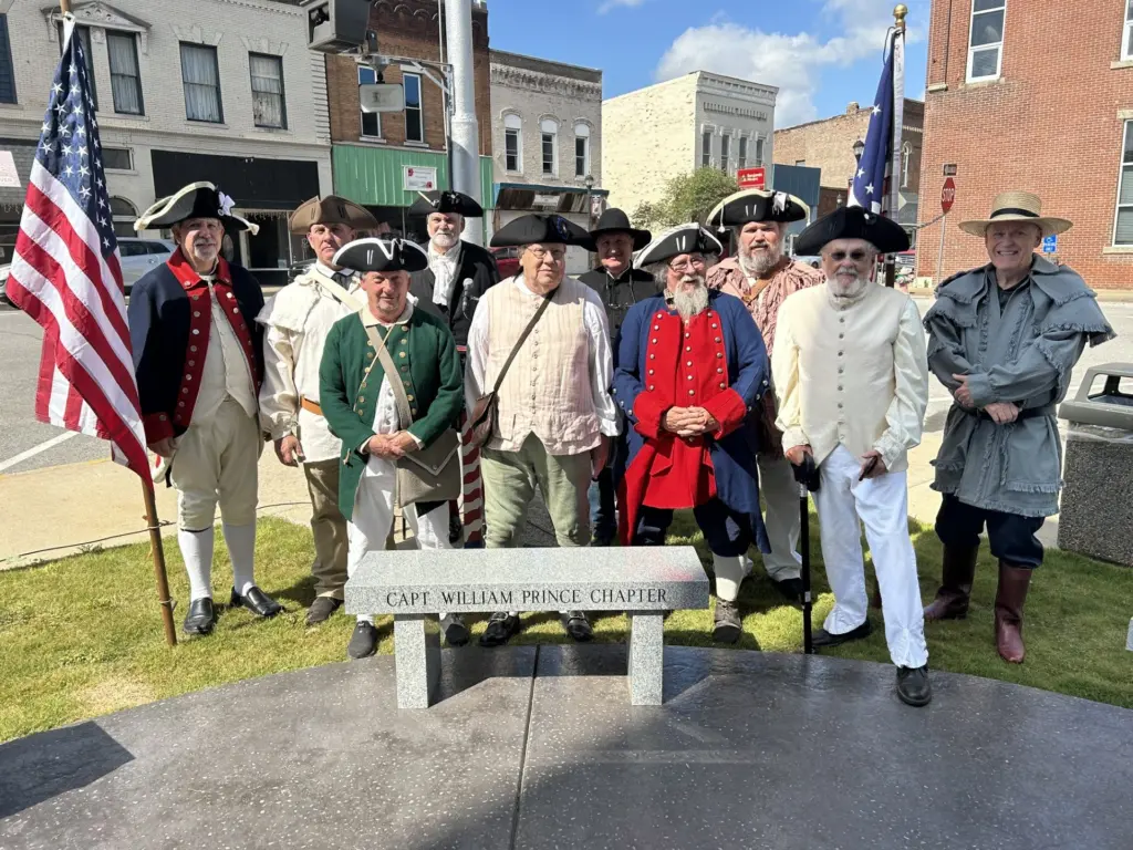 The William Prince Chapter of the Sons of the American Revolution held a special 250th Anniversary Celebration Memorial Bench Dedication on Saturday morning. The ceremony was held on the front lawn of the Caldwell County Courthouse with a good attendance of residents.