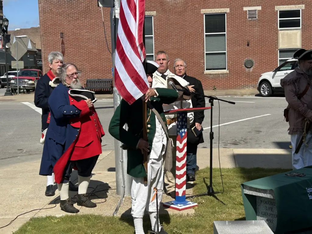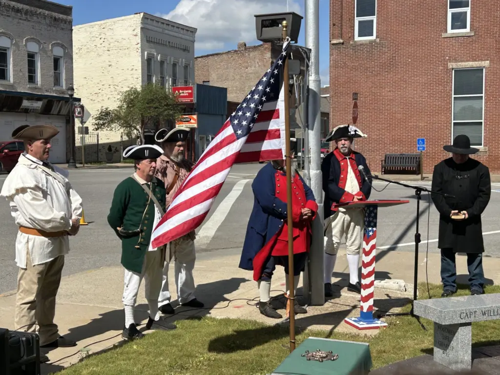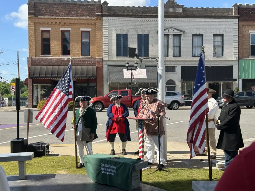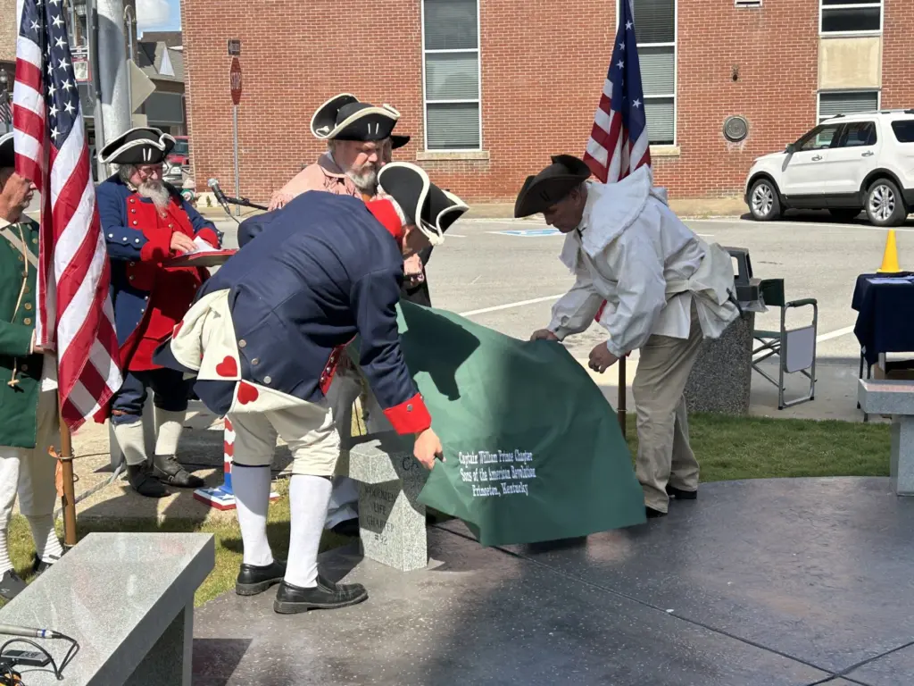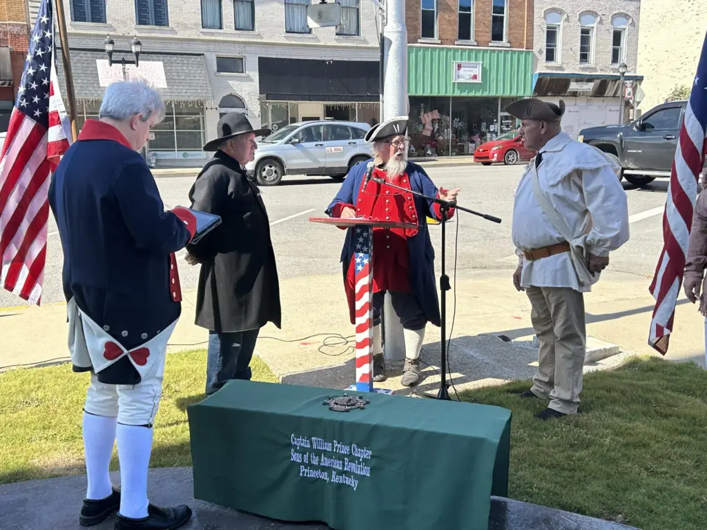The William Prince Chapter of the Sons of the American Revolution held a special 250th Anniversary Celebration Memorial Bench Dedication on Saturday morning. The ceremony was held on the front lawn of the Caldwell County Courthouse with a good attendance of residents.