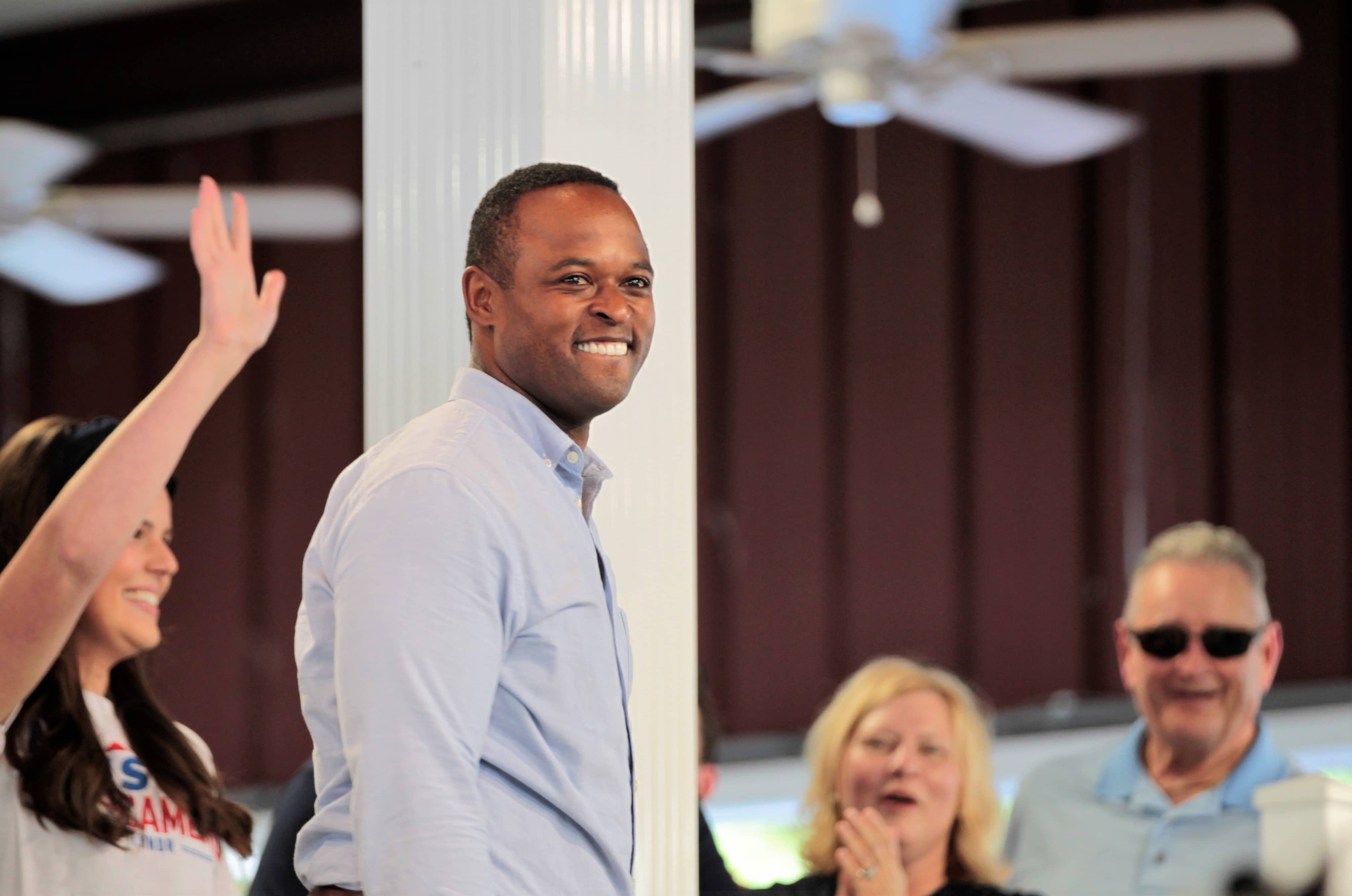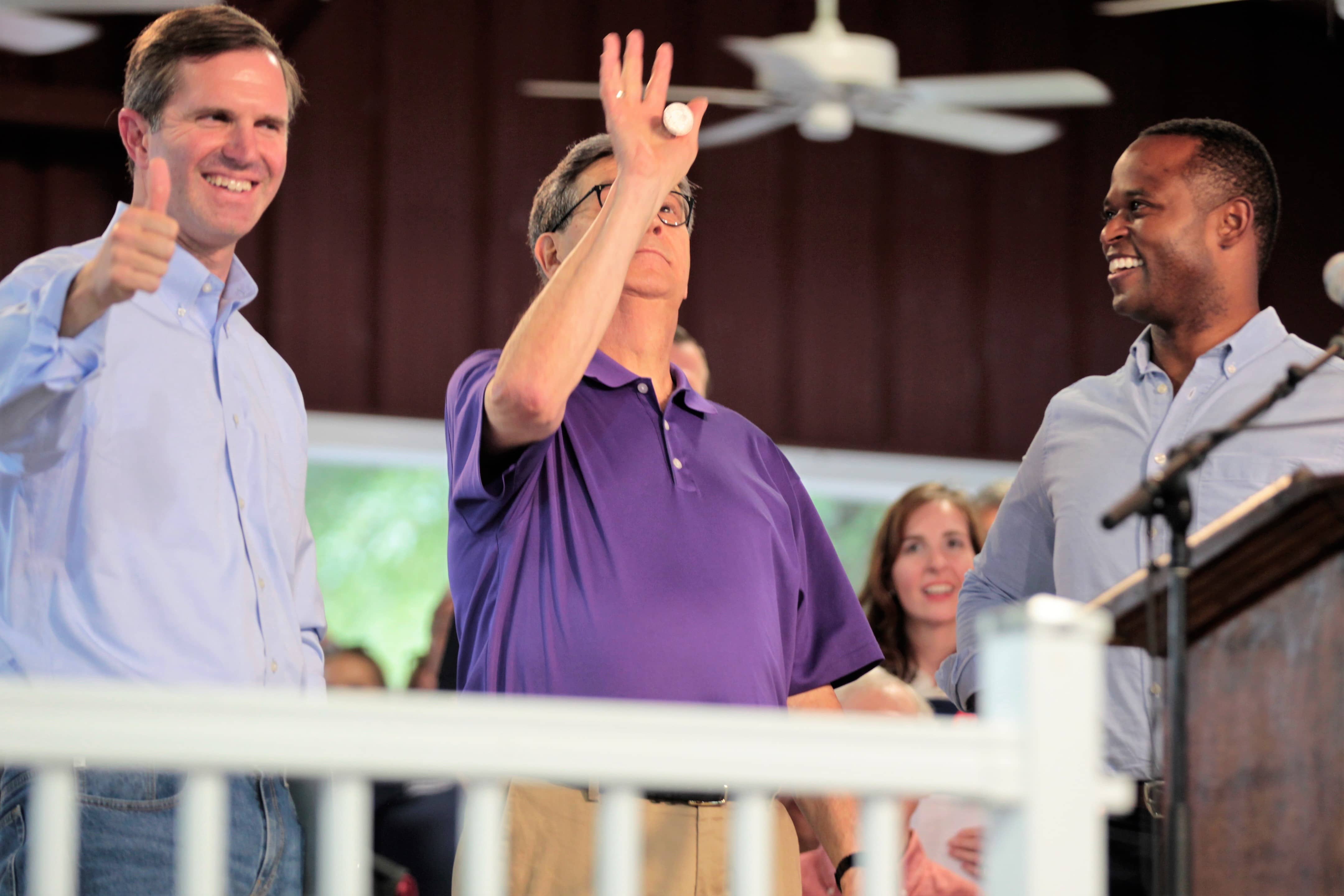 Beshear pressed on, knocking Cameron’s actual pick: Henderson’s Robby Mills. He quipped that if one were to take all of the “LG” candidates above Mills, it would be the largest rally of the Cameron campaign.