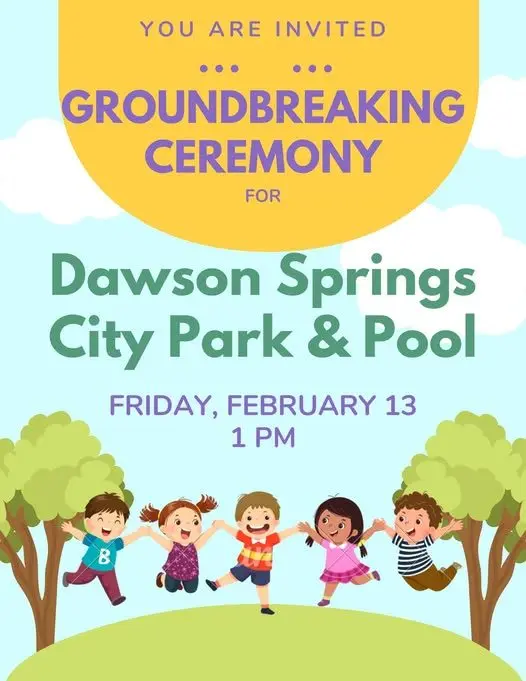 The City of Dawson Springs is excited and proud to announce that there will be a groundbreaking ceremony of the City Park and Pool. Please plan to attend this celebrated groundbreaking for the newly, to-be-constructed City Park